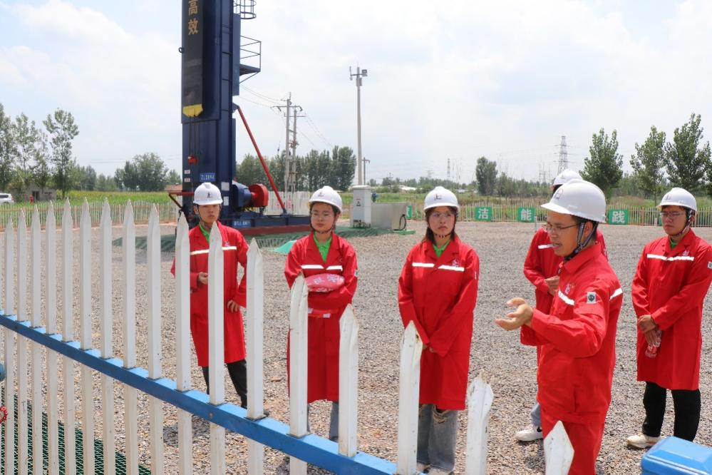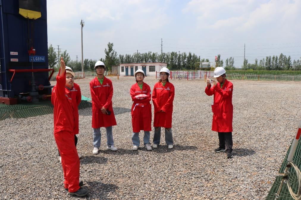 在CCUS注采现场——高946平台,现场技术人员详细介绍了二氧化碳的注入、采出情况及充分运用气水交替、混相区等进行驱油的CCUS先进技术。同时,介绍了利用智能化无人机巡护、光伏、光热等先进技术提高智能化、清洁化管理的情况,通过深入了解CCUS注入封存情况,使大家切身体会到了习近平总书记绿色低碳发展理念在基层的落地实践。