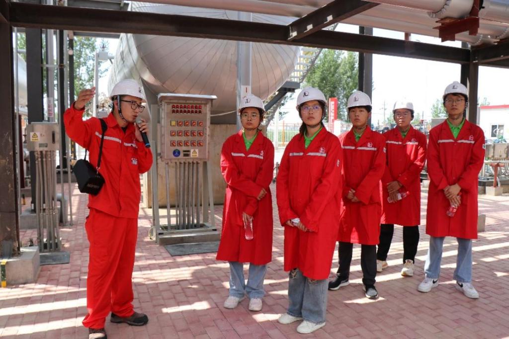 在CCUS集输处理现场——樊128处理站,讲解员介绍了站内主要设备设施,站库功能等,并讲解了采出的二氧化碳如何进行分离后再注入的全过程。同时,介绍了国内首台套微正压密闭脱碳器、采出水气提撬和多重聚结水处理装置等多个国内领先技术设备,实现绿色清洁生产,让我们感受到了科技创新在推动绿色低碳高质量发展中发挥了重要作用。