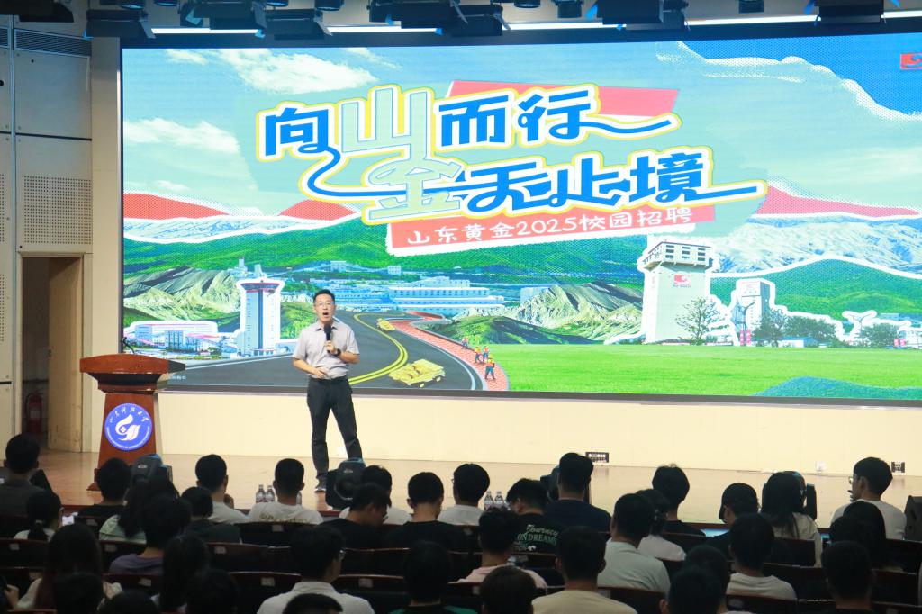 会议伊始,山东黄金集团代表对到场的同学表示热烈欢迎,并通过视频、PPT简单介绍了山东黄金集团的历史沿革、战略布局及人才培养方案等内容,同时也展现了山东黄金积极响应国家政策的企业担当。
