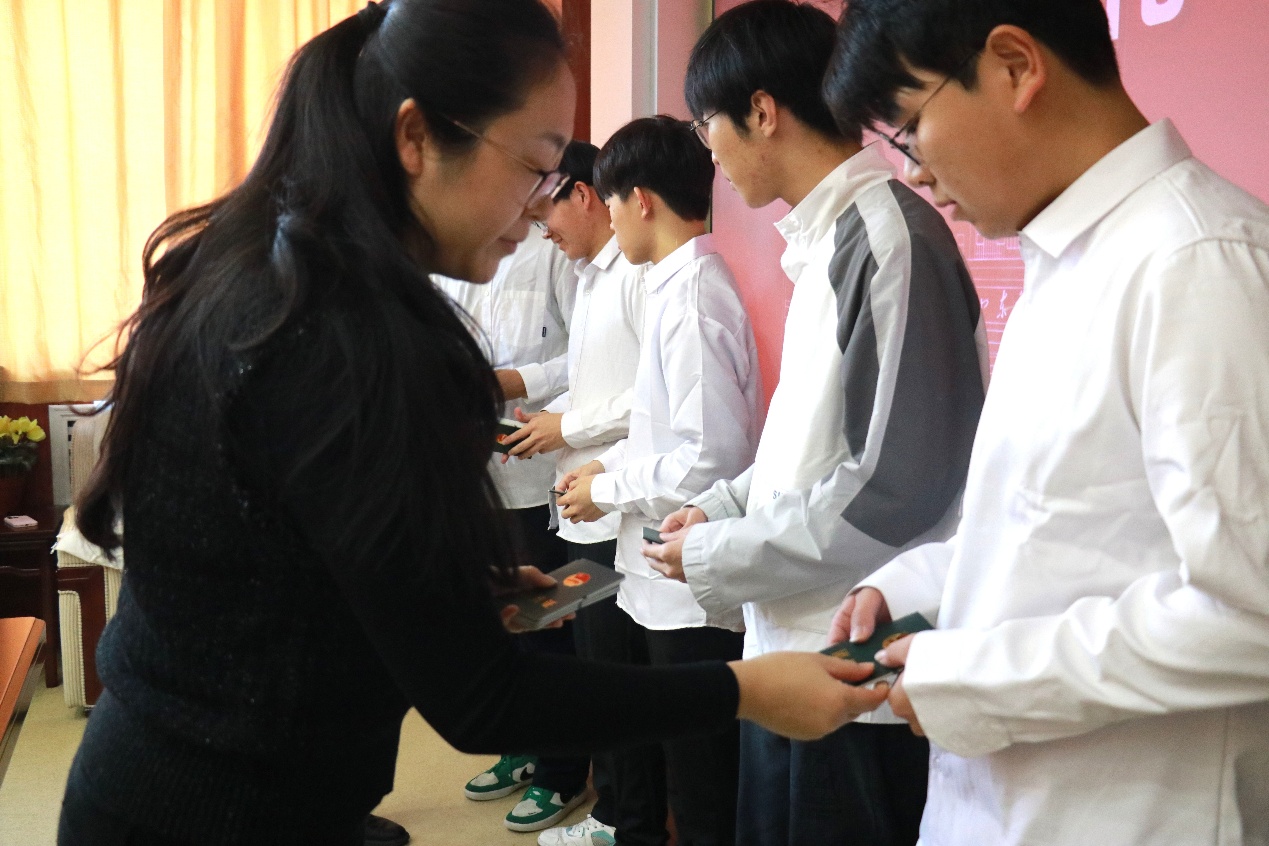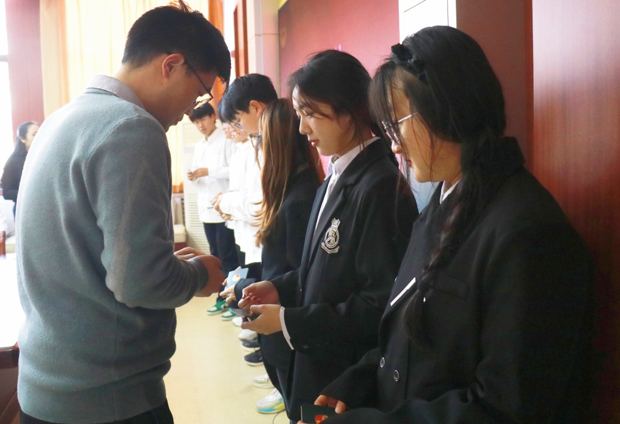 入团仪式在庄严的国歌声中拉开序幕,全体师生庄严肃立,齐唱国歌。仪式上,主持人秦玥宣读新团员代表名单,此次共有11名同学光荣地加入了中国共产主义青年团,团委书记王文鑫和辅导员王键国分别为他们颁发团员证、佩戴团徽。随后,新团员们根据团章规定,面向鲜艳的共青团团旗,高举右拳,庄严宣誓。铿锵有力的宣誓声彰显着新时代青年的青春热血和为团组织奉献的坚定信念。