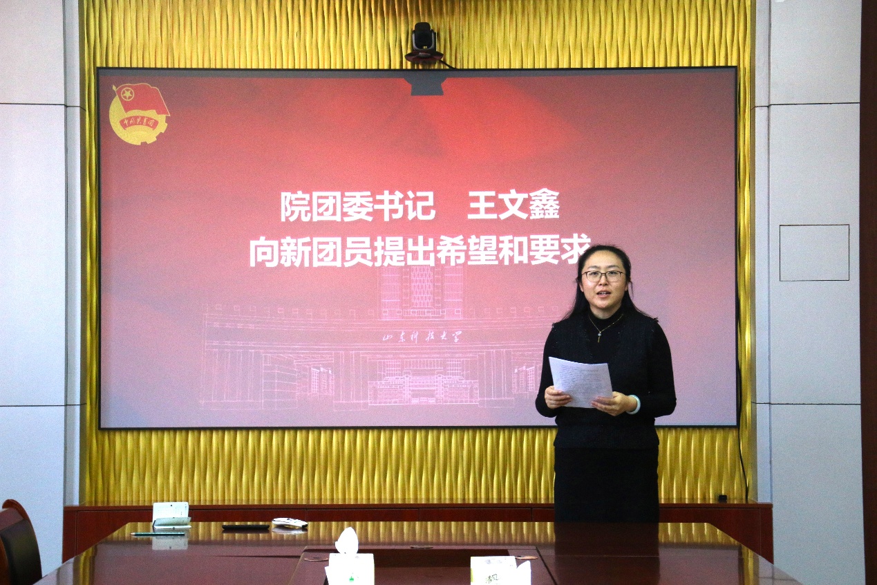 学院团委书记王文鑫向全体新团员表达诚挚的祝贺和美好的祝愿,并希望新团员们明确入团的意义和责任,厚植家国情怀、涵养进取品格,以奋斗姿态激扬青春梦想,不忘初心,地质报国。