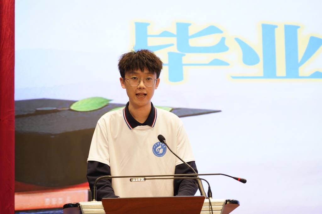 毕业生代表徐启煜做感谢发言,他表示,感谢老师们四年来的辛勤培养和辛苦付出,未来的道路上,全体毕业生将牢记学院和老师们的教诲和嘱托,以梦为马,不负韶华,争做新时代的追梦人。
