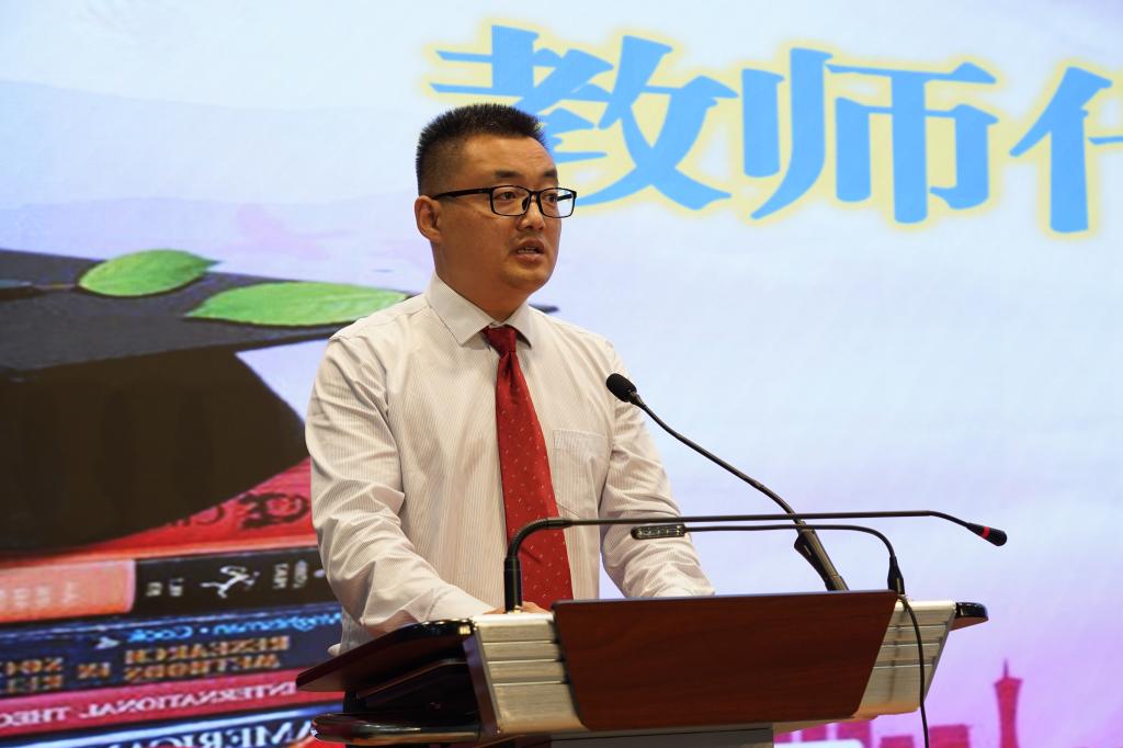 教师代表丁仁伟致辞,他表示,四年美好而艰辛的大学生活犹如漏斗中的沙石已悄然流进昨日,在未来的道路上,请大家牢记自己科大人的身份,秉承“惟真求新”的科大校训,发奋图强、积极进取,为学院添彩,为母校争光。