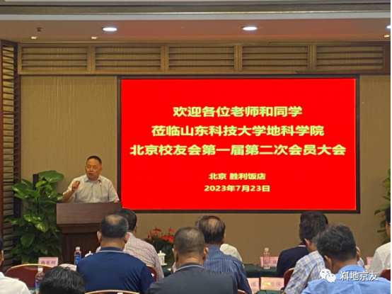 盛夏时节再聚首,携手奋进新时代。在yl88858永利官网北京校友会成立两周年之际,按照校友会章程规定,经过紧张有序的筹备,山东科技大学地球科学与工程学院北京校友会第二次全体大会暨第二届地球科学发展与创新论坛大会于2023年7月23日在北京胜利饭店举行。学校校友总会领导、yl88858永利官网领导和老师代表、校友会成员等70余人出席大会,本次大会还特别邀请入学40周年及以上(1983级及以前)的校友代表出席。会议由yl88858永利官网2003级校友徐学蓓和2011级校友张义祥主持。