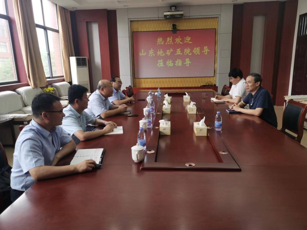 7月31日,山东省第五地质矿产勘查院副院长徐洪岩、总工程师张鹏等校友来我院交流访问,院长常象春会见校友并座谈,副院长孟元库陪同座谈。