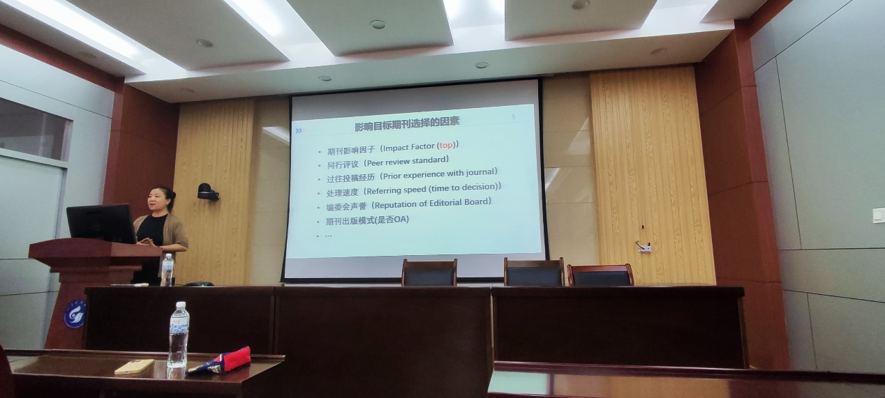 王媛教授就如何撰写和发表高质量英文科技论文的若干技巧出发,从如何选择合适的目标期刊,到科技论文的构思与结构,再到论文写作过程中可能遇到的问题与建议,全方面多角度的为我院师生讲述了撰写科技论文的经验和方法,并就论文投稿过程中遇到的常见问题给与详细的剖析。王媛教授还以《Journal of Palaeogeography》为实例分享,讲述了高效出版流程是如何助力科研成果推广的。