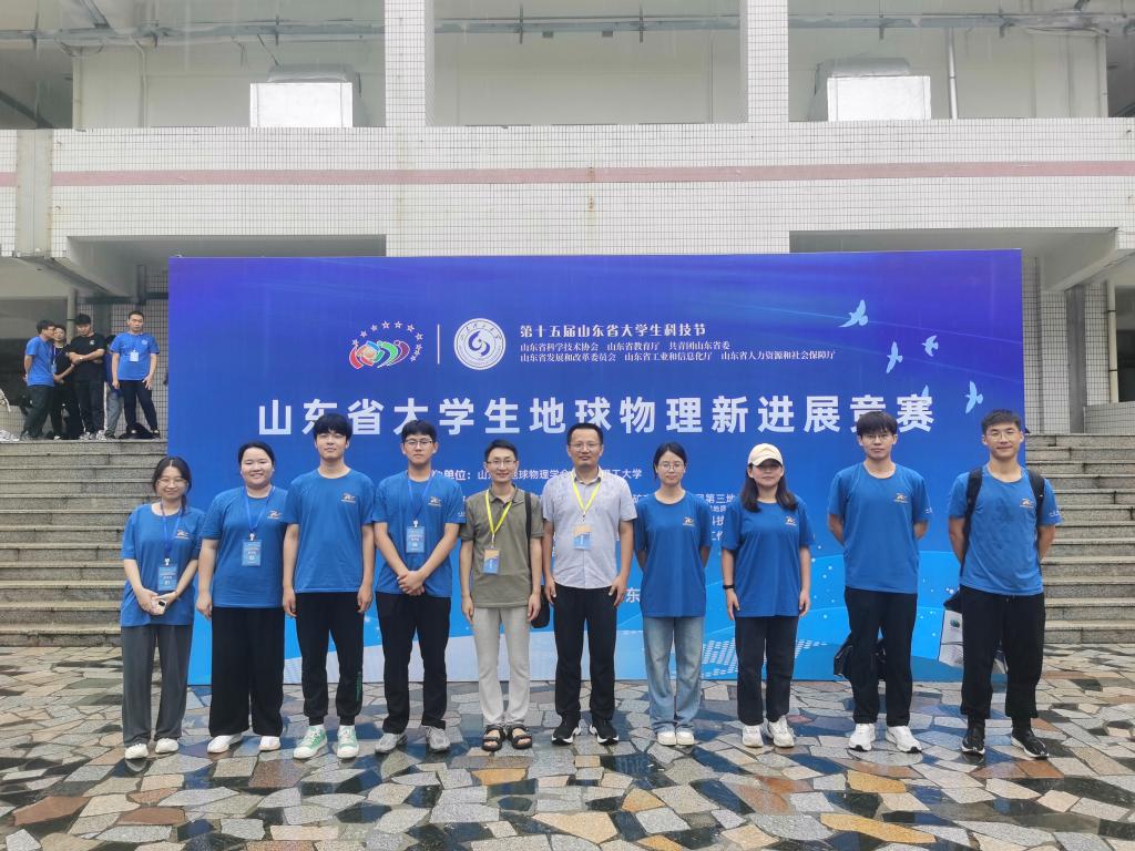 2023年8月26日至28日,第十五届山东省大学生科技节-山东省大学生地球物理新进展竞赛决赛在山东理工大学顺利举办。来自山东大学、中国海洋大学、中国石油大学(华东)、山东理工大学和山东科技大学等省内5所高校的12支代表队参加了此次大赛的总决赛,大赛分为地震类和重磁电类2个类别。经过校内初赛选拔,我院1支地震队,1支重磁电队参加了本次大赛。赛项内容包括视频展示、风采展示、必答题、抢答题和综合题五个部分,考查各参赛队伍对地球物理知识的掌握程度以及各参赛选手的应变和表达能力。我院参赛队员积极准备、团结协作,顺利完成了各项比赛任务,最终取得了重磁电队第一名,地震队第二名的优异成绩。