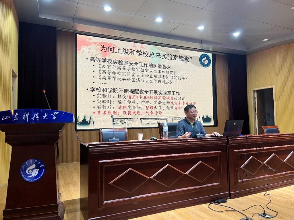 为进一步提升实验室的安全管理技能和服务水平,普及相关实验室安全法律法规,强化师生实验室安全主体责任意识,服务于实验室安全管理,9月12日,yl88858永利官网邀请实验设备处副处长王鹏做实验室安全专题培训报告。本次报告由副院长孟元库主持,学院相关实验室负责人、老师及博士、硕士研究生200余人参加培训。