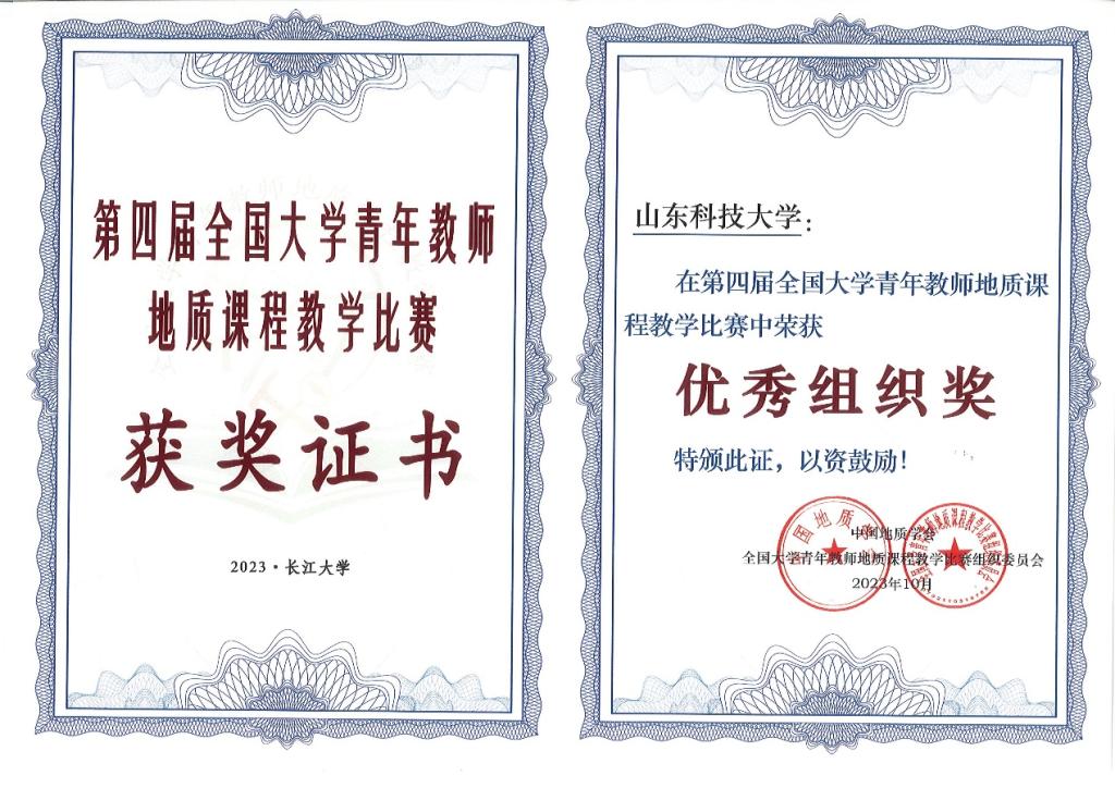 共同探讨地质课程教育新发展,培养选拔优秀地质教学人才。10月21日至22日,第四届全国大学青年教师地质课程教学比赛暨中国地质学会地质教育研究分会2023年学术年会在长江大学举行。来自全国地质研究领域的350余名专家学者和参赛教师齐聚长江大学武汉校区知音湖畔,研讨地学人才培养新模式,观摩专家示范课程,开展青年教师地质课程教学大比武。我院青年教师刘一霖、魏友卿分别荣获一、二等奖,学校获得优秀组织奖。