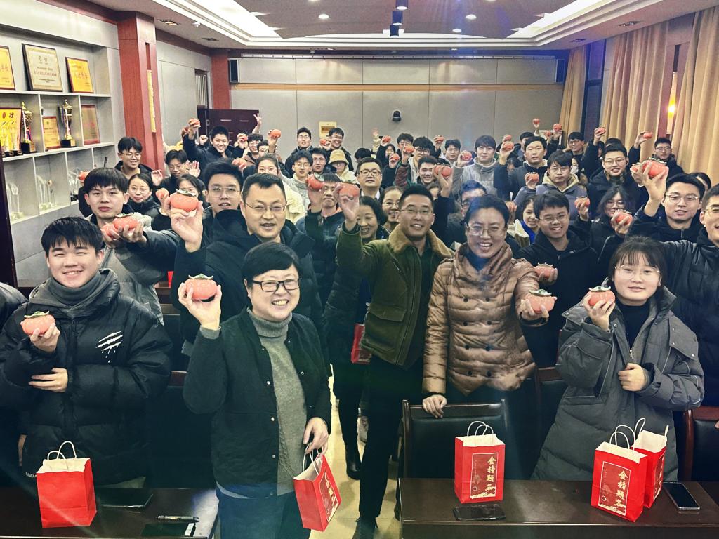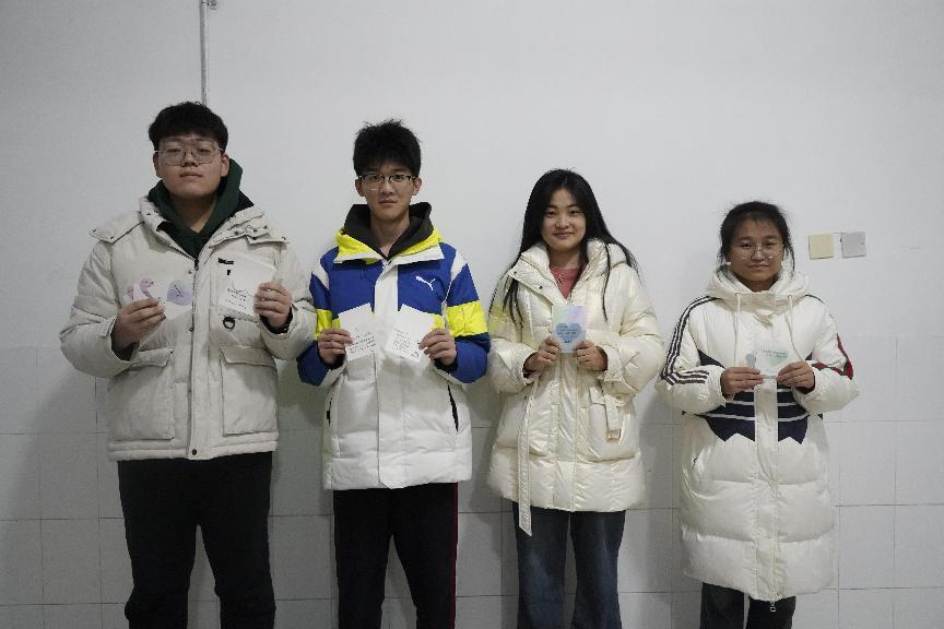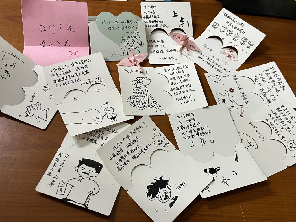 活动伊始,高慧与奋战考研学子们进行亲切交流,叮嘱并鼓励同学们在最后冲刺阶段,一是要适当解压,保持良好的心理状态,沉着应对,凝心聚力,持之以恒;二是要劳逸结合,保持良好的身体和学习状态。祝福每一位考研学子士气如虹,从容提笔,一举成“硕”!随后,老师们为考研学子送上学院精心准备的“金榜题名”考研大礼包。大礼包内包含“柿柿如意”瓷罐、“‘牛气冲天”纯牛奶、“金榜题名”钥匙扣、“旺气冲天”士力架糖果以及学院老师和同学们亲笔书写的幸运祝福贺卡,饱含了学院对考研学子们浓浓的关爱和殷切的期盼,希望考研学子平安如意,一“研”为定、成功上岸!同学们纷纷表示:“学校和学院的关爱是最好的鼓励,有了老师和学弟学妹们的暖心祝福,自己会加倍努力、一“研”为定,让自己“研”途闪闪发光。”