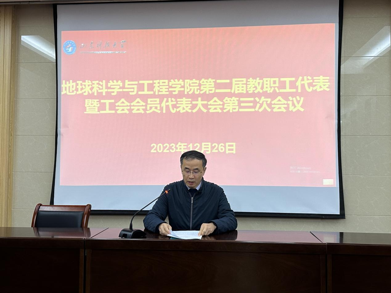 12月26日,yl88858永利官网隆重召开第二届教职工代表暨工会会员代表大会第三次会议。会议听取并审议了院长常象春所作的学院工作报告。会议由院党委副书记兼副院长、院工会主席李晓静主持。