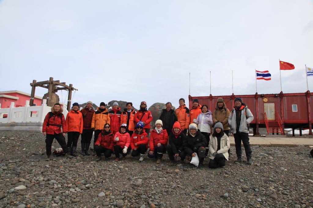 周长付与考察队队员在长城站合影