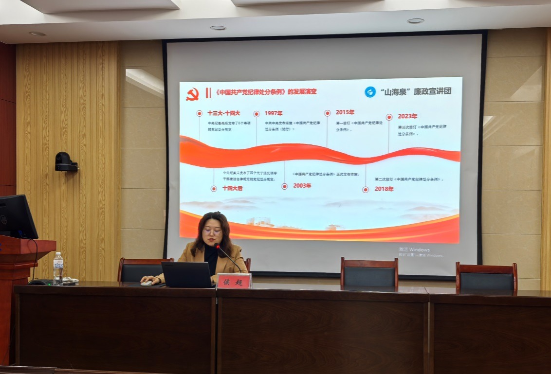 为深入学习新修订的《中国共产党纪律处分条例》,抓实党纪学习教育,4月23日,学院党委理论学习中心组(扩大)进行第四次集体学习,本次学习邀请学校“山海泉”廉政宣讲团成员、校党委巡察办公室侯超老师做党纪专题报告。学院党委理论学习中心组成员、各支部委员、各科室管理干部和辅导员参加报告会,报告由学院党委委员、副院长杨仁超主持。