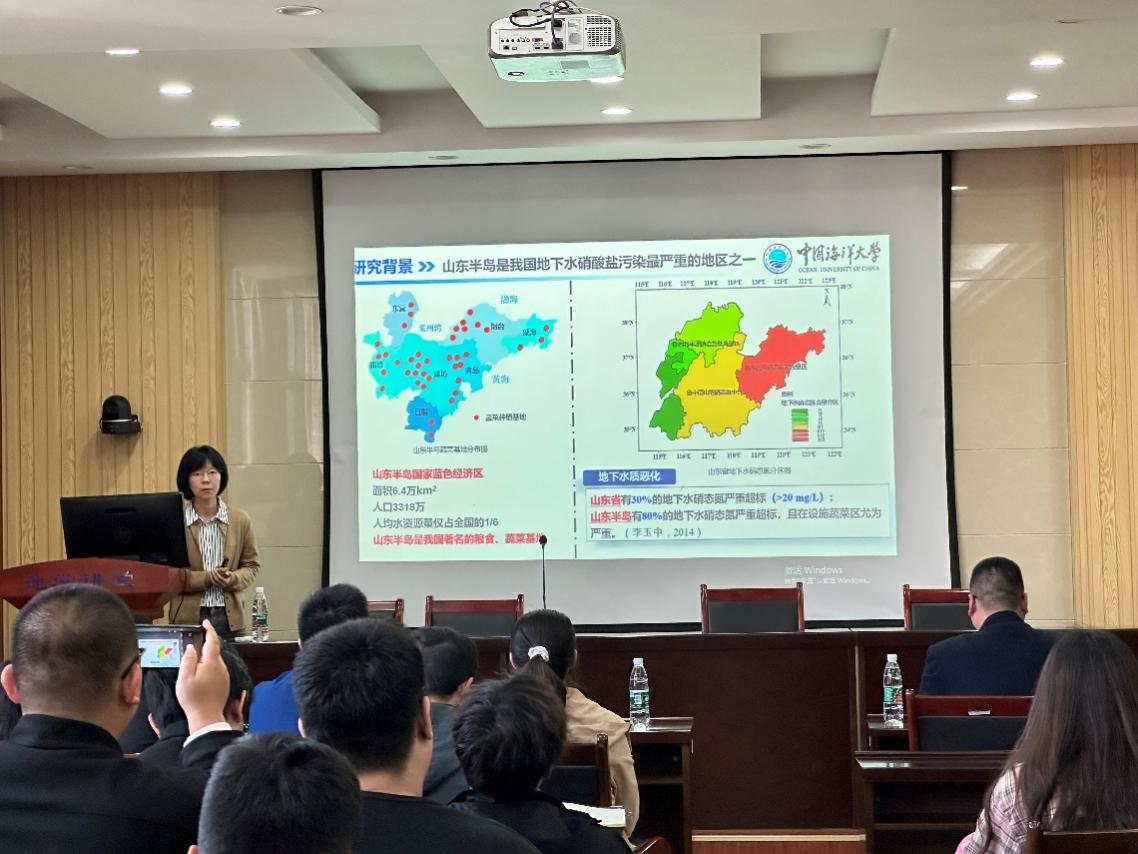 辛佳教授结合团队研究方向,以“农业区域地下水硝酸盐污染现状及修复策略”为题,从区域地下水氮素污染特征、选择性应用地表农业措施强化地下水硝酸盐自净、秸秆还田增强地下水氮损失的作用机制等三个方面详细介绍了团队近年来的研究成果。辛佳教授研究团队从突破复杂水文地质条件下污染形成界面过程和防控机制出发,提出构建基于“源头阻控、包气带截污、含水层自净及容量控制”的靶向阻控技术体系的研究目标。