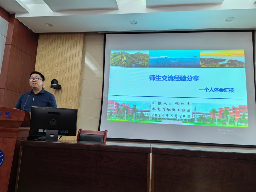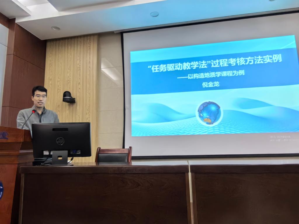 优秀教师代表倪金龙教授、张伟杰副教授,学院教学督导冯建国副教授分别以“任务驱动教学法过程考核方法实例——以构造地质学课程为例”、“师生交流经验分享——个人体会汇报”、“课堂理论教学听课情况汇报”为题进行典型发言,分享了他们关于过程性考核方法、如何与学生进行有效沟通交流以及课堂教学过程中常出现的问题等方面的经验,与会老师都表示受益匪浅。