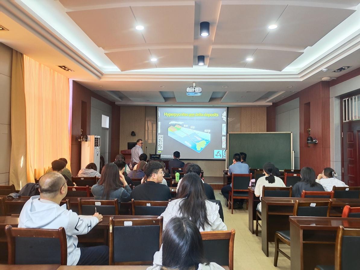 《Modern geological theory and methods》由阿根廷国立南方大学Carlos Zavala教授主讲。他主要讲授了高密度浊流进入汇水盆地的不同密度流体的三个类型:异轻流、等重流和异重流,重点详细讲解了异重流的相关概念、触发条件、湖相和浅海环境异重岩的岩相特征、识别标志、内源浊积岩和外源浊积岩的区别等内容,并列举了阿根廷、特立尼达以及我国鄂尔多斯盆地等大量异重流沉积研究实例。课堂内容精彩、丰富,科研案例丰富生动,同学们就相关科学问题与Carlos Zavala进行了热烈而深入的交流。