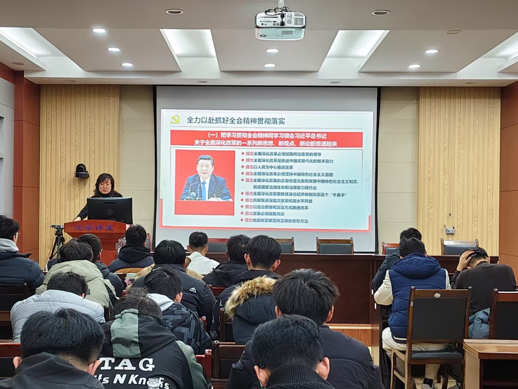 11月12日,yl88858永利官网党委副书记李晓静带领全体研究生在J6-530深入学习领会习近平总书记在党的二十届三中全会上的重要讲话精神,引导青年学生统一思想和行动,进一步激发昂扬斗志,勇担时代使命。