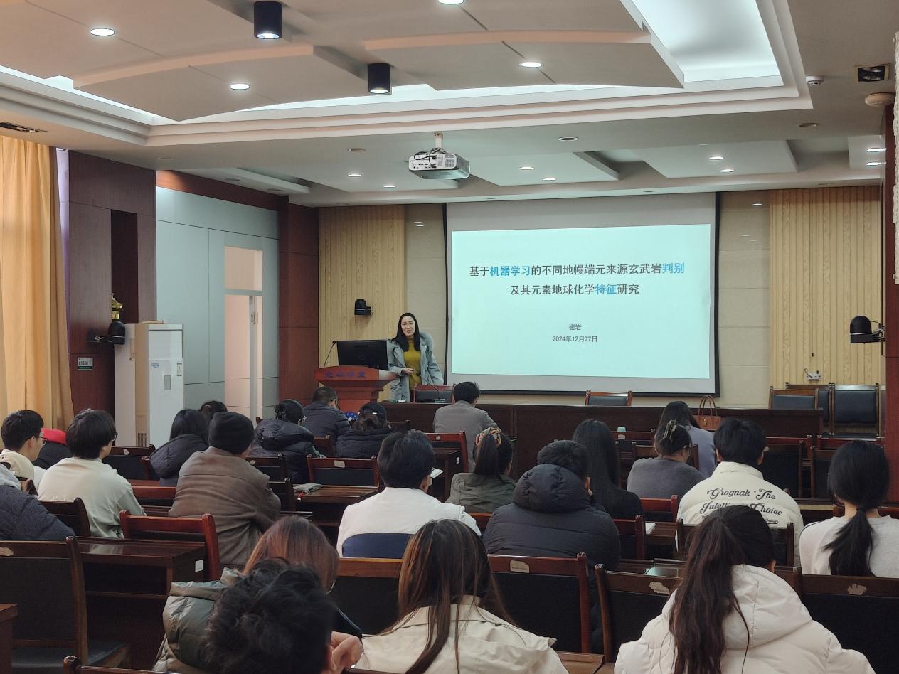 本期活动采用了学术报告会的形式。地球物理系杨思通、崔岩、宋翠玉、张金伟四位老师分别以“采煤工作面内隐伏构造透射槽波探测与成像方法”、“基于机器学习的不同地幔端元来源玄武岩判别及其元素地球化学特征研究”、“黄岗盆地古近纪时期盐湖沉积的天文驱动作用及其古气候响应”、“密集台阵高阶面波成像方法及应用”为题,从科学问题的提出到研究思路、方法和结论等方面做了全方位介绍。本次活动拓宽师生学术视野,激发创新思维,为今后的科研和学习提供了启示和灵感。