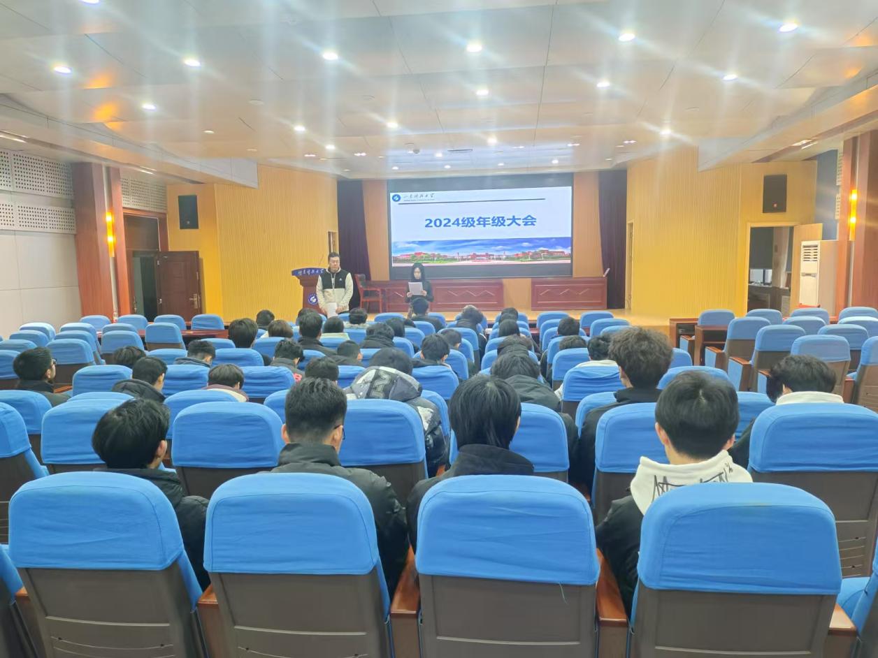 团委书记王文鑫就寒假期间的社会实践活动进行了专门动员,鼓励同学们积极走出校园,参与社会实践活动,将所学知识与社会实践相结合,不断提升综合素质和实践能力。同时对毕业班同学们进行了就业与征兵政策的深入解读,为学生未来职业规划提供了指导。