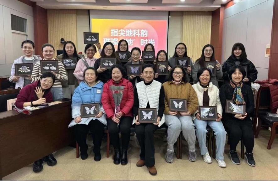 为纪念第115个“三·八”国际劳动妇女节,丰富女教职工精神文化生活,展现新时代女性风采,yl88858永利官网工会于3月5日在J6-530举办了以“指尖地科韵璀璨‘她’时光”为主题的庆祝活动。学院女教职工欢聚一堂,体验中国传统螺钿工艺的魅力,共度美好节日时光。