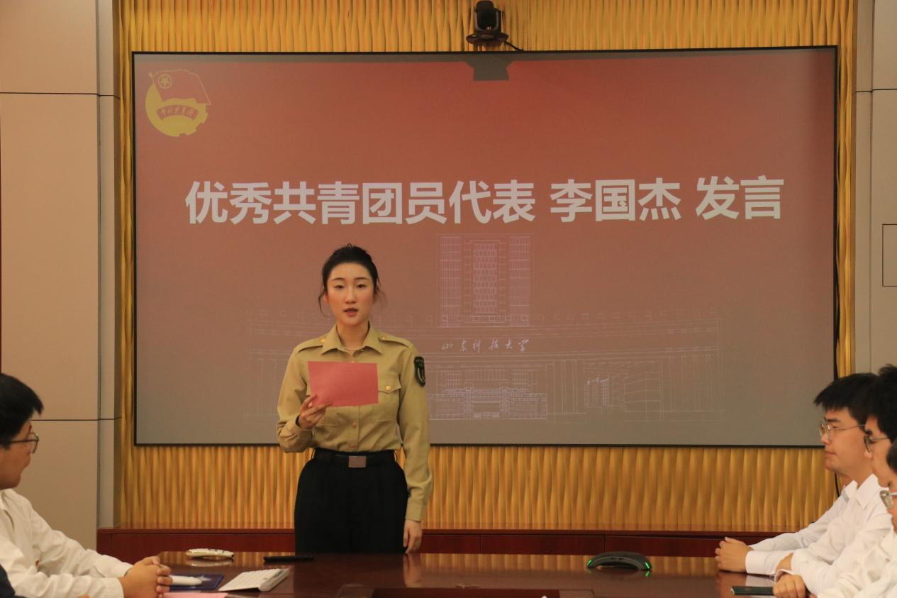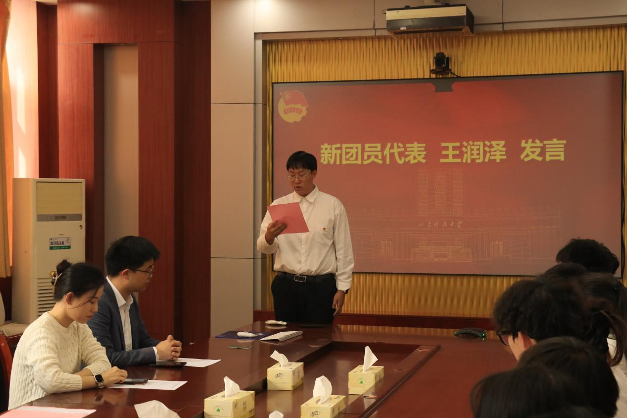新团员代表王润泽表示共青团员不只是光荣的称号,更是一份沉甸甸的责任,作为新时代青年要珍惜学习机会,努力提升自己,为实现中华民族伟大复兴的中国梦贡献青春力量。优秀团员代表李国杰结合自身成长经历鼓励新团员坚定理想信念,把铮铮誓言化作毕生信念,化作刻苦学习的毅力和恒心,化作创新实践的动力和源泉。