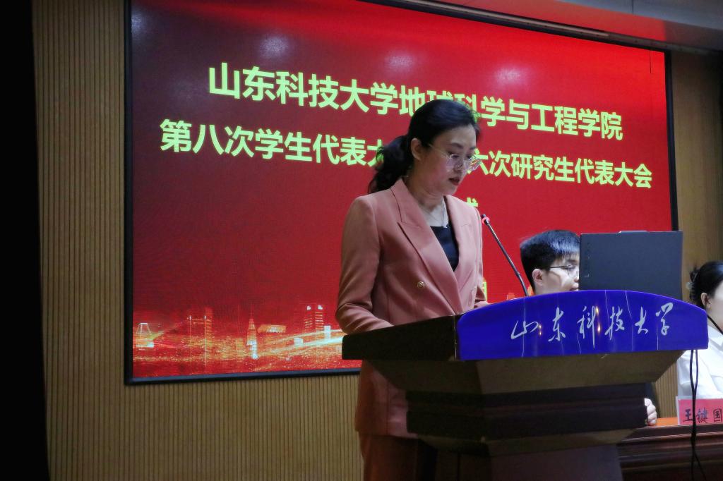 下午四点,大会在国歌声中开幕。李晓静代表学院党委对大会的召开表示热烈祝贺,肯定了学生会、研究生会过去一年在思想引领、服务学生等方面所做的工作,并对新一届学生会、研究生会以及全体同学们提出了三点希望:一要坚定理想信念,做“听党话、跟党走”的先锋表率;二要扎根同学需求,做“办实事、解难题”的青年纽带;三要锤炼过硬本领,做“敢担当、善作为”的地质尖兵。李晓静强调,学生会、研究生会要紧扣“党建引领·地质铸魂”主线,充分发挥桥梁作用,不断服务同学成长、助力学院发展。