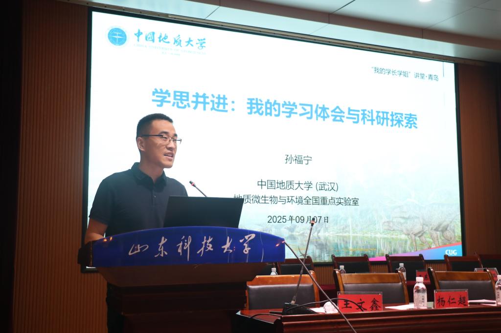 9月7日,yl88858永利官网在J6-434报告厅举办2025级新生见面会暨第14期“我的学长学姐”讲堂,山东科技大学原副校长王明镇,资源勘查工程2013级校友、中国地质大学(武汉)副教授、国家自然科学青年基金(B类)获得者孙福宁应邀出席。学院党委书记高慧、院长常象春等领导班子成员,各系党支部书记、主任,教师代表、辅导员和2025级全体新生参加会议,会议由学院团委书记王文鑫主持。