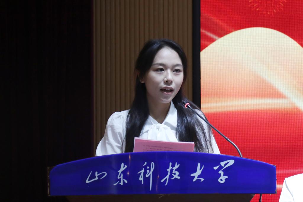 新生代表聂子涵同学在发言中表达了对学院的感谢和对大学生活的憧憬与向往,同时表示要向优秀校友们学习,努力学习专业知识,为国家的发展和科技的进步贡献自己的力量。