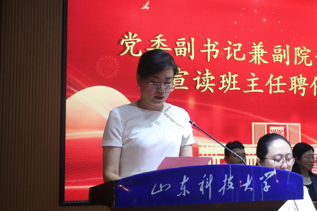 学院党委副书记兼副院长李晓静宣读班主任聘任决定,随后学院领导为老师们颁发聘书。