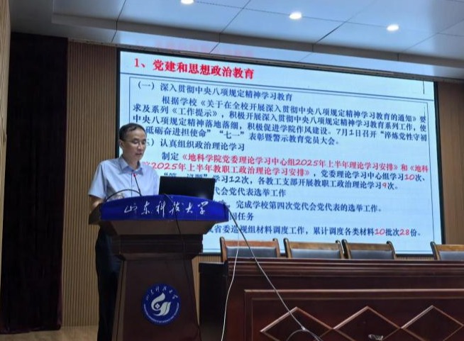 会上,院长常象春对学院2025年上半年取得的成绩和不足进行了总结分析,并重点部署和强调了学院2025年下半年工作要点。常象春围绕党建与思想政治工作、师资队伍建设、本科教学工作、学位与研究生教育、招生与就业、科研与学科建设、学生教育管理服务、交流与合作等几个方面,在充分肯定各项工作成绩的同时,也实事求是地指出了学院当前面临的主要问题,希望全院教师进一步明确下半年目标任务,抓住当前学科建设的难得机遇,全面推动学院工作向更高质量发展。