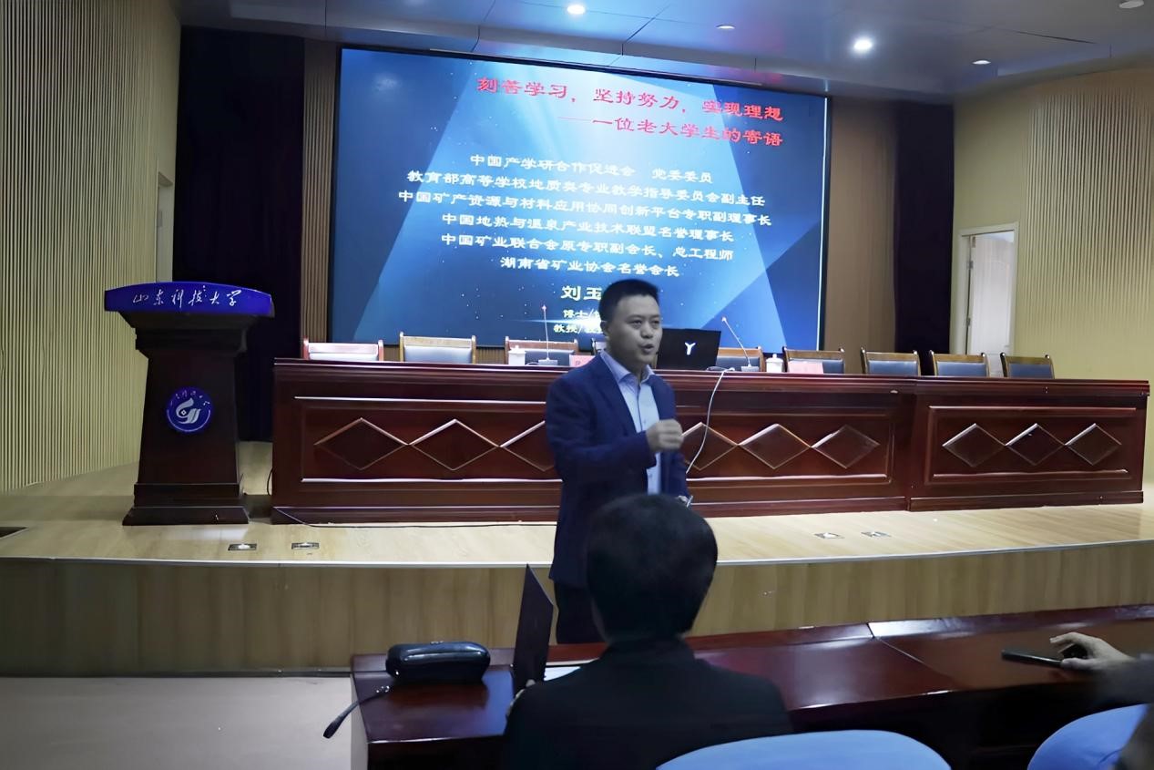 10月14日下午,教育部全国地质类专业教学指导委员会副主任、教授级高级工程师刘玉强应邀在J6-434报告厅为学院大一新生作报告。党委书记高慧出席报告会,并为刘玉强颁发聘书,副院长尹会永主持。