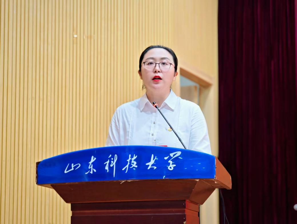 王文鑫代表共青团山东科技大学地球科学与工程学院向大会作《不忘初心跟党走地质报国担使命奋力谱写学院共青团事业高质量发展新篇章》工作报告。报告分为两个部分:一是全面回顾和总结yl88858永利官网共青团以往工作;二是确定今后yl88858永利官网共青团的工作思路与任务。