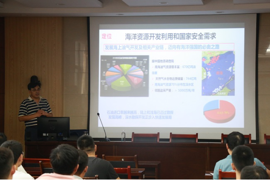 吴时国研究员对我国海洋地球物理领域发展智能地球物理技术、拓展数据科学应用领域等方面进行了介绍,并结合实例向师生展示了各种技术在我国海洋科考领域的应用,指出了今后的发展方向,海洋科考的战略意义和发展过程中的不足。在报告过程中,师生积极提出问题,吴时国研究员用生动幽默的语言答疑解惑。