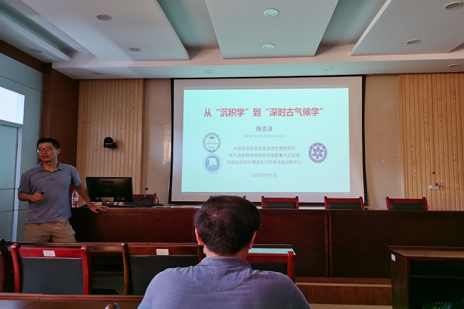 报告伊始,陈吉涛就传统沉积学与深时古气候学之间的关联进行了概述,地层中沉积的岩石和化石记录保留了多种尺度的地球气候历史档案,这种深时档案可以证明古海洋环境、全球碳循环及气候变化的相关性,对于研究现今温室气体对未来环境的影响有重要意义。同时,陈吉涛也分享了自己新近的部分研究成果,报告深入浅出、层层递进、内容丰富。