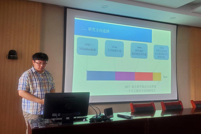 2020年9月29日下午四时,yl88858永利官网邀请中国科学院南京地质古生物研究所硕士薛乃华进行了题为“天文旋回地层学研究的阶段性进展”的报告。薛乃华是我院地球物理学专业13级的优秀校友,是国内较早开始研究深时天文旋回地层学的一批人之一,硕士期间发表多了篇高水平论文,将赴比利时布鲁塞尔自由大学攻读博士学位。报告会由地球物理系主任丁仁伟老师主持,yl88858永利官网部分师生参加。