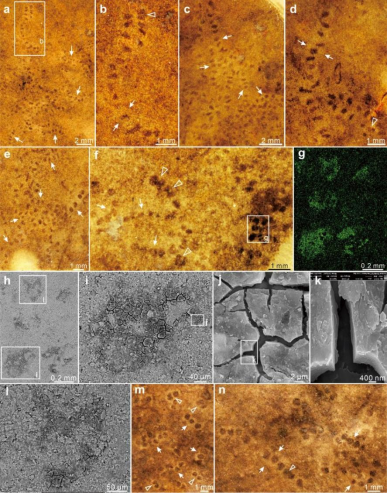 以碳质压膜形式保存的Horodyskia minor标本及其元素分布、扫描电镜图片