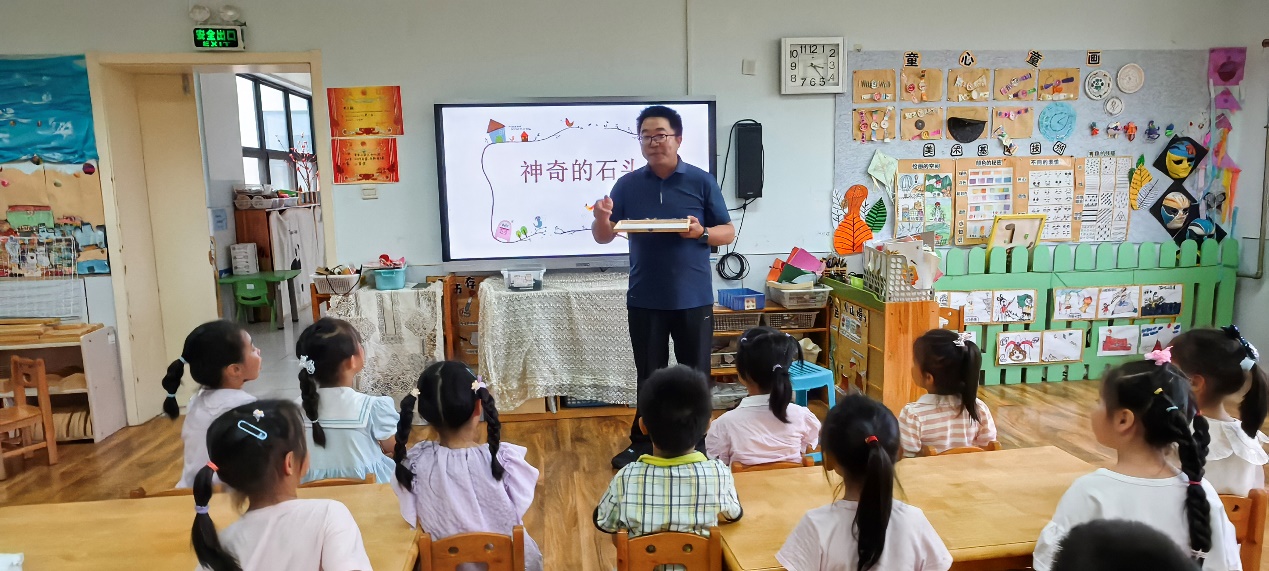 “小朋友们,你们见过会游泳的石头吗?”、“你们知道吗?石头中埋了好多宝贝呀!”……6月14日,我院水文与地质工程系教师张伟杰副教授走进山东科技大学幼儿园,为大二班的小朋友们开展题为《神奇的石头》科普讲座。