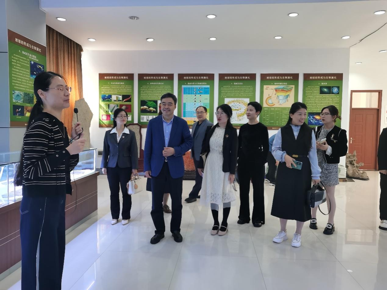 矿产地质系副主任韩超向来访客人介绍了学院特色学科、专业设置及专业特点;地球科学馆馆长王倩对地球科学馆建馆历程、藏品情况、实践育人和科普教育等内容做了详细介绍。