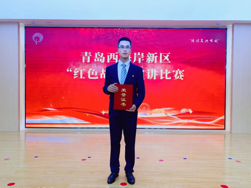 近日,由青岛西海岸新区文明办和区科协组织的“红色故事”演讲比赛在新区新时代文明实践中心落幕,经过激烈角逐,我院推荐的2022级资源与环境专业研究生、地球科学馆科普志愿讲解员项杰涛荣获大赛三等奖。